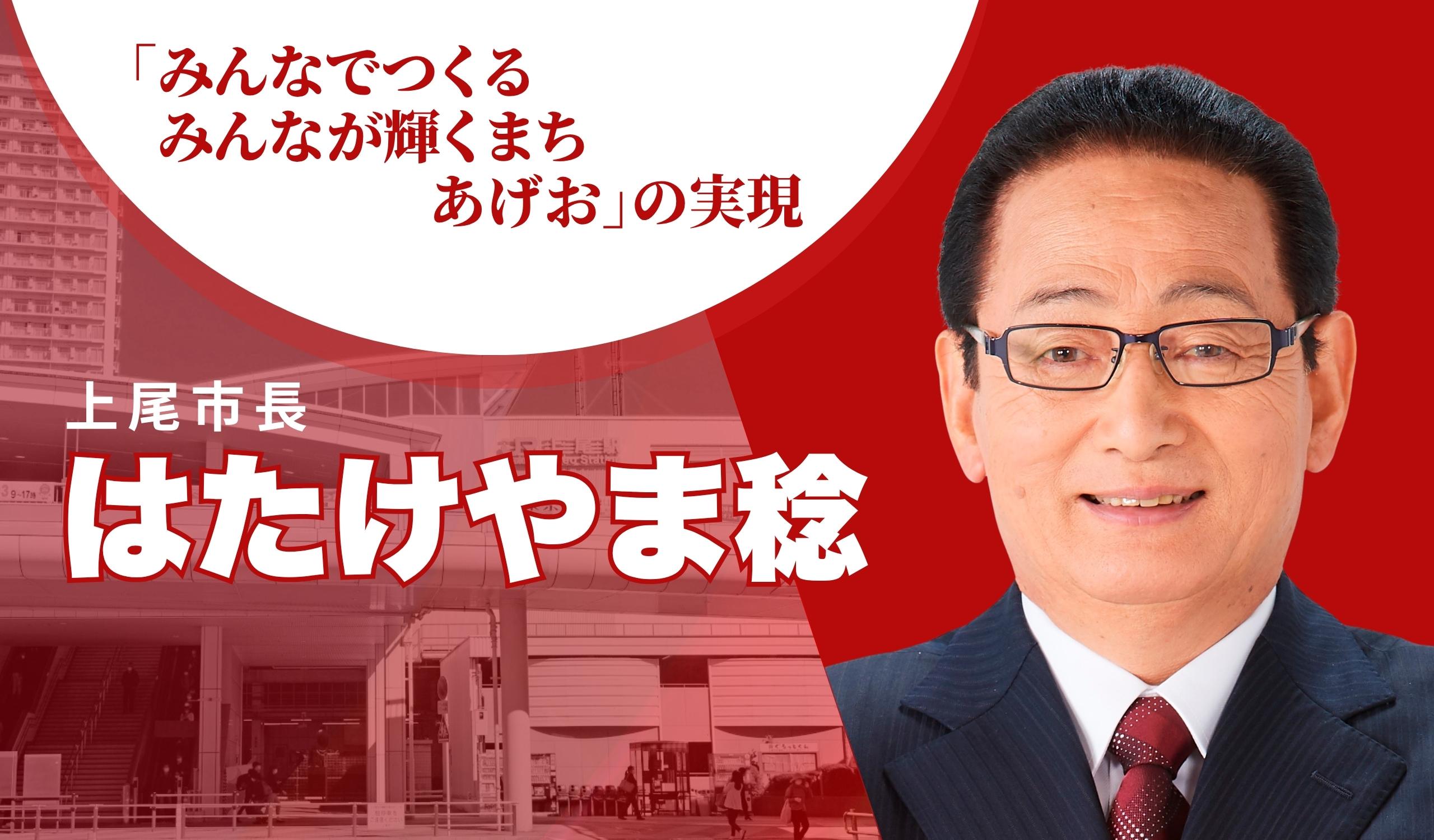 畠山市政の2期8年の実績を礎として、皆様とともに上尾のさらなる未来を切り拓いていくため、こどもからお年寄りまで、「上尾に住んで良かった・これからも住み続けたい」と思える魅力あるまちづくりに向け、畠山市長は引き続き全力を尽くしてまいります。